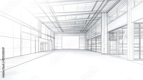Detailed 3D Render: Modern Building Interior Architectural Sketch. AI Generated
