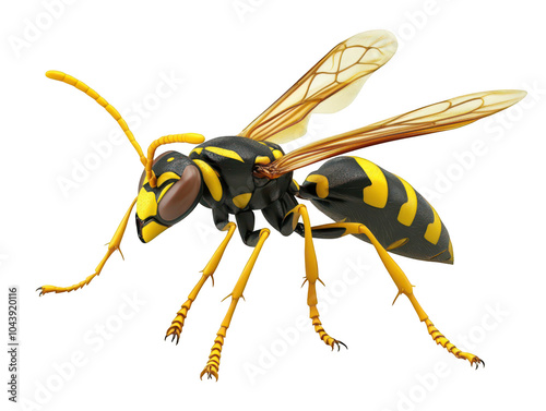 Detailed 3D rendering of a wasp displaying vibrant yellow and black coloration.