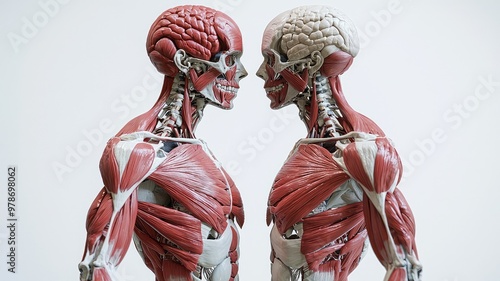 Detailed anatomical models depicting the human muscular and skeletal systems for educational purposes and anatomical studies.
