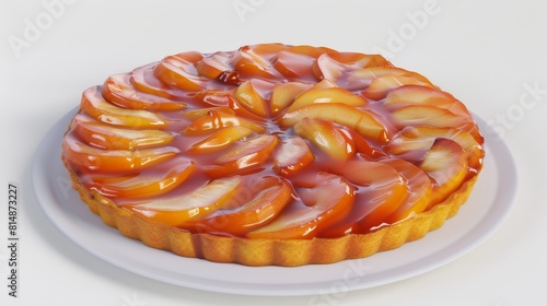 Detailed Apple Tarte Tatin on white background realistic depiction upside-down pastry theme 3D render Complementary Color Scheme