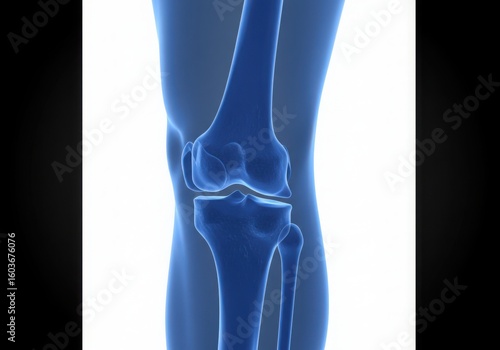 Detailed blue x ray of a human knee joint