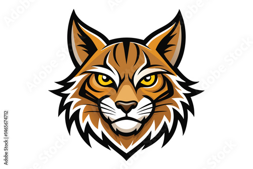 bobcat, cat, animal, felino, mammal, wildcat, predator, carnivore, wildlife, mascot, emblem, head, face, portrait, nature, wilderness, strength, fierce, aggressive, hunter, dangerous, bold, tough, strong, powerful, athletic, gold, yellow eyes, striped, fur, angry, sport, team, logotype, black, brown, sharp, detail