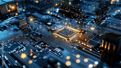 semiconductor, circuit, technology, factory, closeup, electronic, production, engineering, component, device, machinery, innovation, blue, lighting, signal, precision, industry, research, manufacturing, substrate, interconnection, intricate, digital, surface, hardware, layout, pattern, modern, futuristic, visual, network, connectivity, design, system, structure, equipment, chips, datum, transmission, environment, workspace, process, assembly, automation