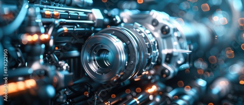 Detailed closeup of car engine and transmission system, mechanical parts focus, automotive technology, ideal for industrial themes, high-resolution