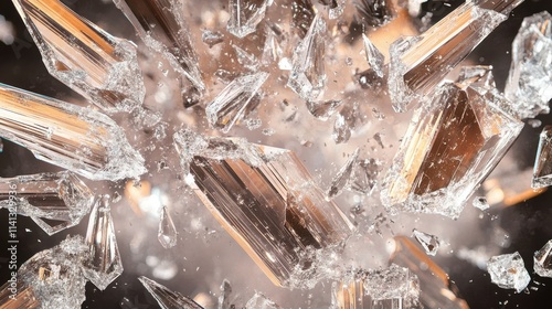 Detailed close-up of shattered glass crystals, capturing the brilliance and sharp edges of each fragment.