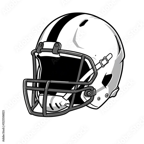 helmet, football, american, sport, gridiron, equipment, protective, headgear, mask, face, stripes, padding, safety, game, player, competition, gear, team, athlete, activity, playing, tough, graphic, design, illustration, drawing, clip art, monochrome, black, white, isolated, background, closeup, protection, sporting, activewear, line art, detail, cut-out, studio