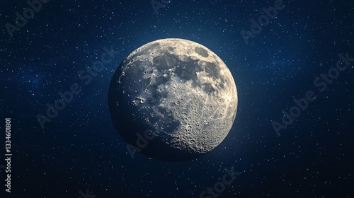 Detailed Full Moon View with Visible Craters and Texture Against a Starry Sky Background in Deep Space
