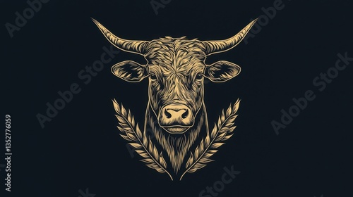 bull, wheat, illustration, nature, rustic, agriculture, artistry, craftsmanship, farm animal, design, animal, head, decorative, black, background, gold, colours, farm, rural, horn, texture, symbol, heritage, farming, graphic, traditional, silhouette, ornamental, cattle, handcraft, detailed, expression, flora, fauna, emblem, vintage, creative, art, wildlife, domestic, animal, sustainable