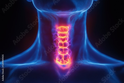 Detailed Illustration of Human Anatomical Structures in the Neck and Throat Including Thyroid and Parathyroid Glands in Neon Blue