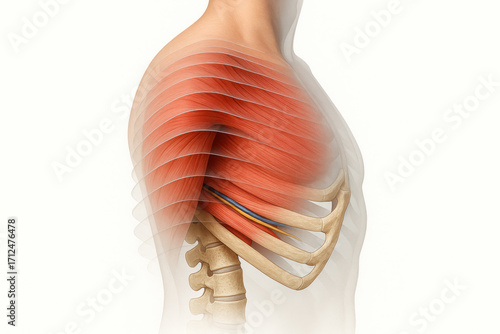 anatomy, bod, muscle, rib, illustration, diagram, biology, science, health, health care, medicals, chest, chested, physiology, vein, artery, nerve, spinal column, spine, vertebra, educational, body, torso, human, closeup