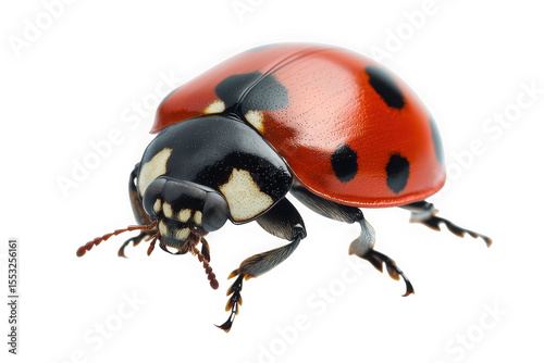 Detailed macro photo of a red and black ladybug ladybird beetle with spots close-up insect photography isolated on transparent background