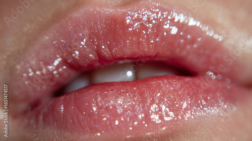 Detailed shot of pigment infusion during lip blush, subtle gradient color forming, illuminated softly by ring light reflections in smooth skin,