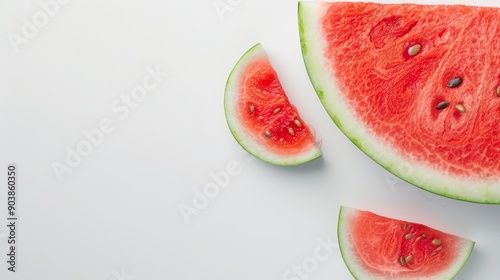 Detailed slice of watermelon with seeds, isolated on a plain background, space for text, highlighting the freshness and juiciness