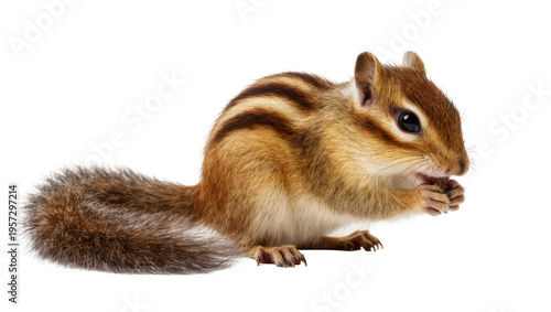 Detailed studio shot of a beautiful chipmunk holding food in its tiny paws