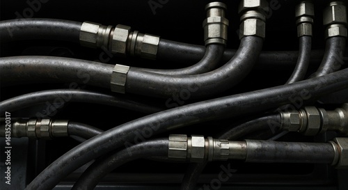 worn, industrial, textured, closeup, machinery, aged, mechanical, engineering, automotive, heavy equipment, pipe, connection, detail, gritty, rust-eaten, grunge, dark, macro, workshop, factory, metal, rubber, component, maintenance, repair, vintage