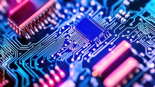 circuit board, microchip, technology, design, connection, pathway, innovation, electronic, hardware, closeup, circuit, modern, blue, purple, intricate, pattern, digital, science, engineering, manufacturing, tech, electrical, precision, detailed, component, device, system, production, signal, performance, advancement, visual, datum, cable, solder, application, assembly, research, microelectronics, fabrication