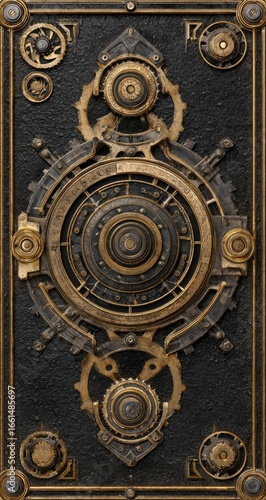 gear, brass, knob, clockwork, mechanical, vintage, antique, complex, intricate, design, dark, background, gold, metal, detail, precise, symmetry, ornate, clock, engine, mechanism, precision, control, adjustment, camera, photographic, device, old, technology, machinery, industrial, art, illustration, image, pattern, structure, engraving, retro