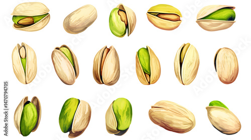 watercolor, pistachio, hand-painted, set, isolated, white background, artistic, green, nut, shell, healthy, snack, organic, culinary, raw, creativity, vibrant, illustration, botanical, natural, fresh, nourishment, food, ingredient, stylish, epicure, painting, design, group, element