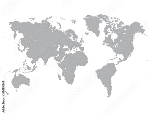 Detailed World Map Illustration with Country Borders in Subtle Grey Tone