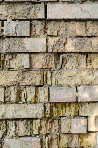 Details of textured aged brick wall. Can be used as background. Vertikal.