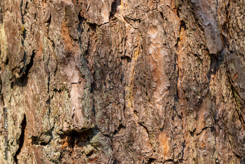 details of the trunk of an old pine with bark of brown shades