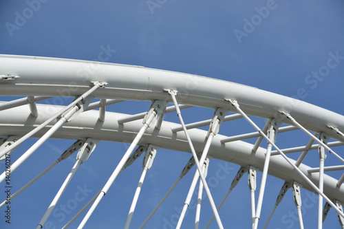 bridge, suspension bridge, boardwalk, flyover, galleria, runner, passage, passage, infrastructure, structure, public works, architecture, structure, modern architecture, street, street, highway, traffic, cross, pedestrian, city landscape, city, la rioja, steel, arco, cable, cable, wiring, braces, catenary, pillar, pillar, column, column