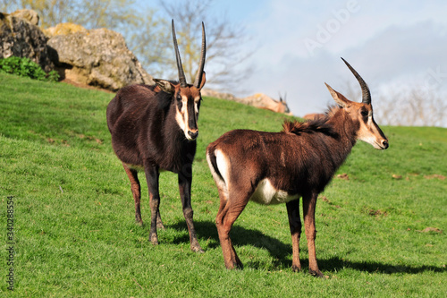 Deux Antilopes noires ou Hippotragues noirs d'Afrique