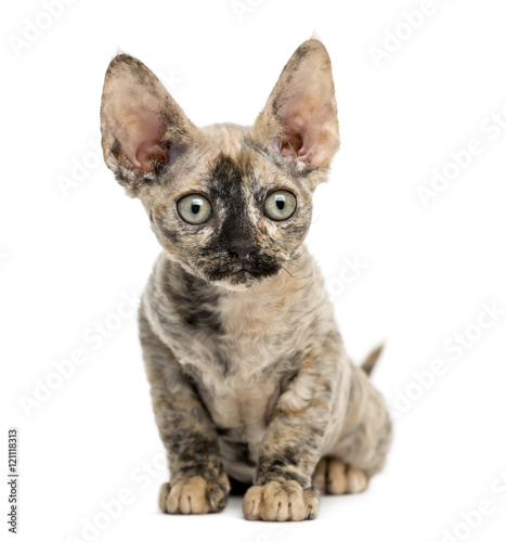 Devon rex cat sitting isolated on white
