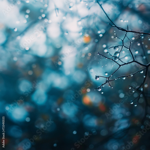 dew, spider's web, copy space, nature, bokeh, morning, rain shower, cold, cool, design, season, art, blur, colours, pattern, blue, light