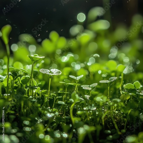 plant, sprout, garden, nature, green, leaf, water droplets, dew, moss, closeup, macro, flora, botany, growth, sunlight, freshness, vibrant, healthy, life, environment, closeup, detail, photo, spring, summer, lush, foliage, fresh, beauty, detail, texture, organic, growing