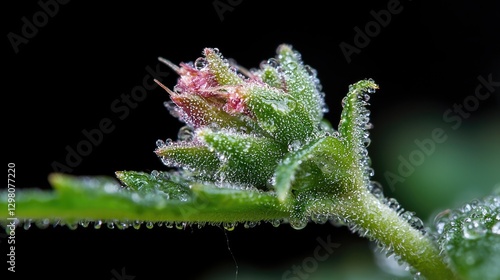 blossom, bud, dew, flower, plant, closeup, nature, green, water, macro, detail, leaf, tiny, fresh, growth, flora, close, waterdrop, morning, freshness, beautiful, photo, botany, image, dew-drop, botanical, spring, garden, dewy, flowering