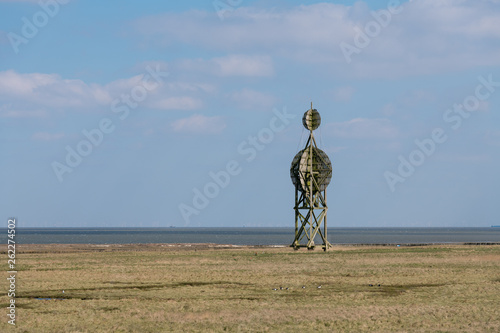 Die Ostbake, das Wahrzeichen der Insel Neuwerk in der Elbmündung im Übergang zur Nordsee