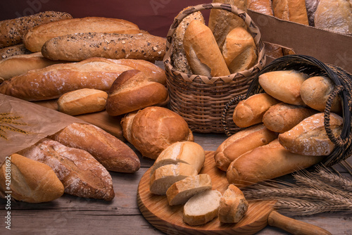 Diferentes tipos de pan sobre una mesa