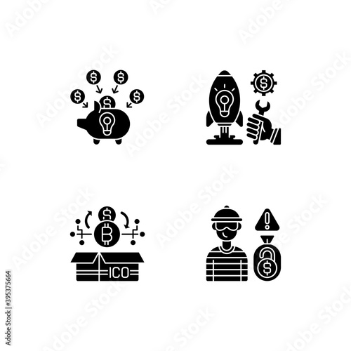 icon, black, glyphs, set, startup, small business, money, crypto, funding, investment, finance, business, saving, campaign, collective, financial, fraud, donation, bank, cyberspace, strategy, economy, currency, vector, isolated, illustration, web, item, logotype, concept, logotype, pictogram, negative space, element, design, symbol, pack, silhouette, flat, solid, filled, collection, simple, clip art