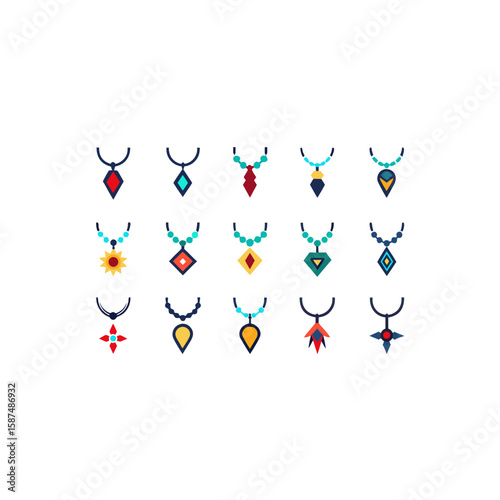 different tribal necklace icons set