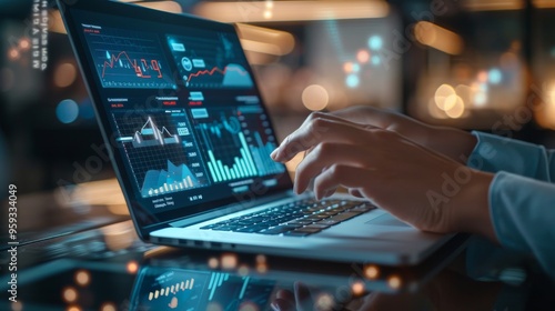 Digital Advertising Analytics and Video ADS Campaigns. Person using laptop analyzing digital ad performance metrics and campaign data. Digital marketing online, Content creation, Customer engagement,