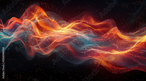 abstract, background, flow, digital, art, red, orange, black, glowing, texture, particle, depth, movement, realism, hi-res, futuristic, modern, tech, technology, space, dynamic, wave, cyber, energy, innovation, design, cyberspace, fluid, virtual, motion, electronic, aglow