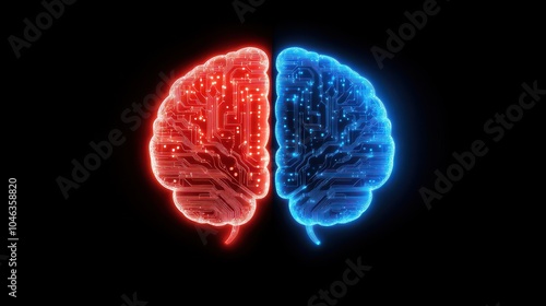 brain, red, blue, glowing, circuit, artificial intelligence, ai, technology, digital, neural, futuristic, intelligence, high technology, electronic, mind, tech, datum, innovation, advanced technology