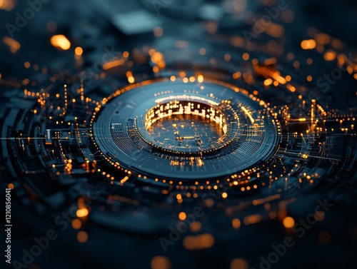 Digital circuit with glowing elements creates a futuristic atmosphere in abstract technology setting