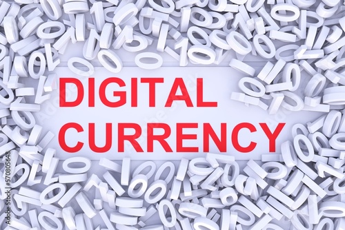 DIGITAL CURRENCY abstract background with scattered binary code 3D illustration