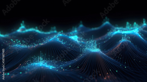 network, net, graph, relief, equalizer, sea, ocean, wave, wavy, corner, texture, cyber, dark, blue, mesh, cyberspace, web, mobile phone, black, background, online, connection, wireframe, communication, grid, datum, line, point, particle, polygon, digital, graphic, concept, modern, wallpaper, shine, technology, glowing, glow, aglow, space, generative, ai, dot, dot, bright, design, light
