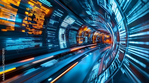 Digital Data Tunnel, Futuristic Tech Background - AI and Machine Le.
