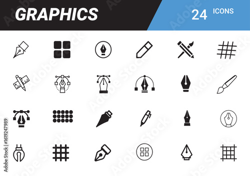 Digital Graphics Icons: A vibrant and comprehensive collection of digital graphics icons, perfect for designers and creatives to illustrate the tools of design.