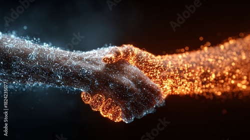 handshake, digital, futuristic, technology, particle, glowing, network, connection, business, agreements, innovation, communication, abstract, collaboration, light, partnership, dark background, digital artwork
