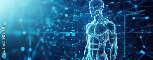 digital, human, medicals, technology, datum, biotechnology, visualisation, anatomy, hologram, biometric, sensor, patch, remote, monitoring, patient, health, health care, futuristic, science, three-dimensional, model, body, art, virtual, innovation, biology, network, blue, abstract, information, research, ai, cybernetic, system, analysis, design, interface, figure, background, representation, structure, reality, imaging, bioinformatics, cyber