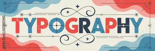 Digital illustration of bold typography with calligraphy and geometric symbols