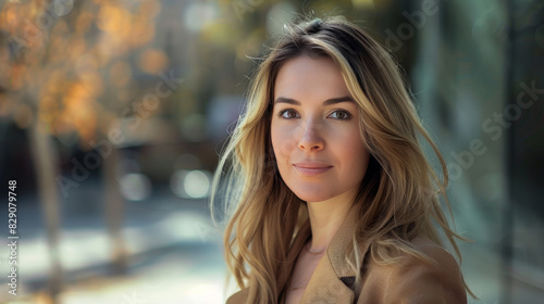 Digital influencer woman posing a portrait on social media, with soft and natural makeup