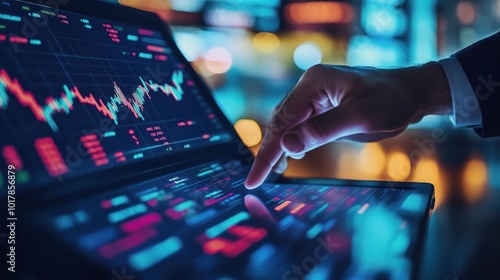 datum, analysis, finance, technology, touch screen, stock, investment, business, market, trend, dashboard, graph, chart, hand, computer, screen, signal, artificial, intelligence, visualisation, information, display, performance, software, digital, economy, trading, modern, control, touch, strategy, interface, user, tool, research, pattern, financial, growth, development, expert, technique, future, report