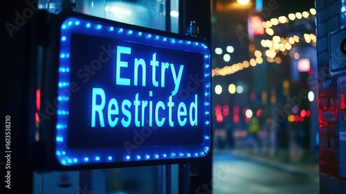 Digital LED Sign Displaying "Entry Restricted" in Blue Letters