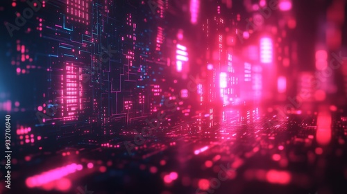 abstract, neon, digital, technology, futuristic, glowing, pink, blue, line, circuit, board, grid, background, wallpaper, graphic, design, texture, pattern, illustration, three-dimensional, render, modern, style, concept, future, science, innovation, datum, network, communication, cyberspace, artificial intelligence, ai